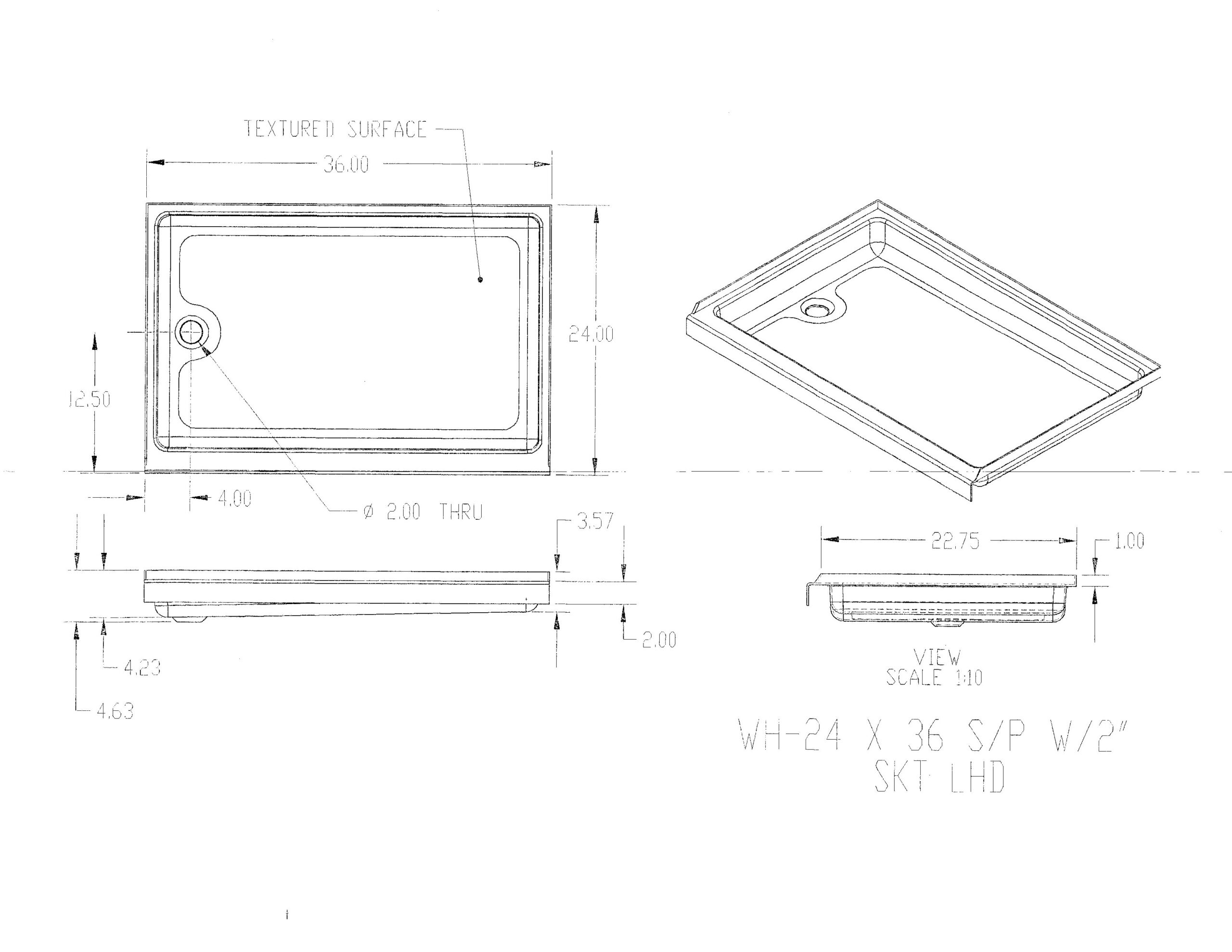 24″ x 36″ White Shower Pan with 2″ Skirt and Left Hand Drain – Entry on 36″ side