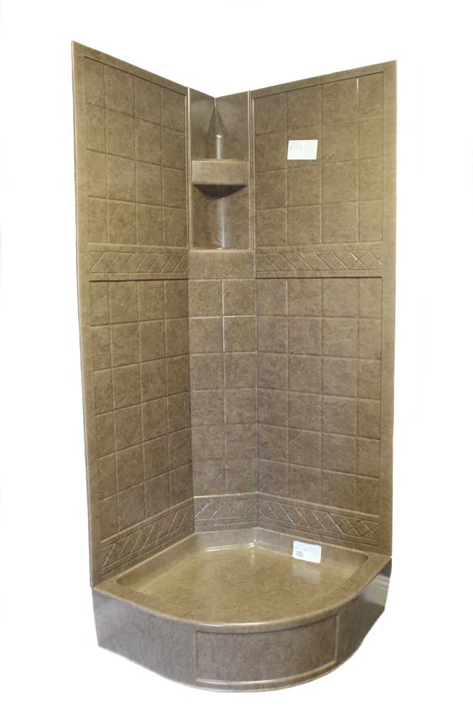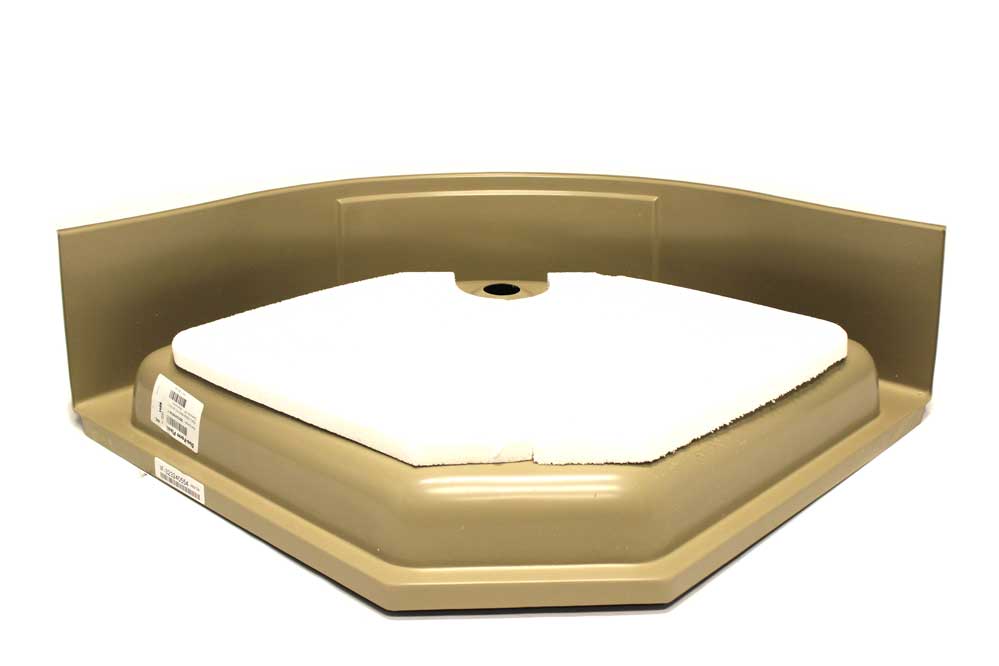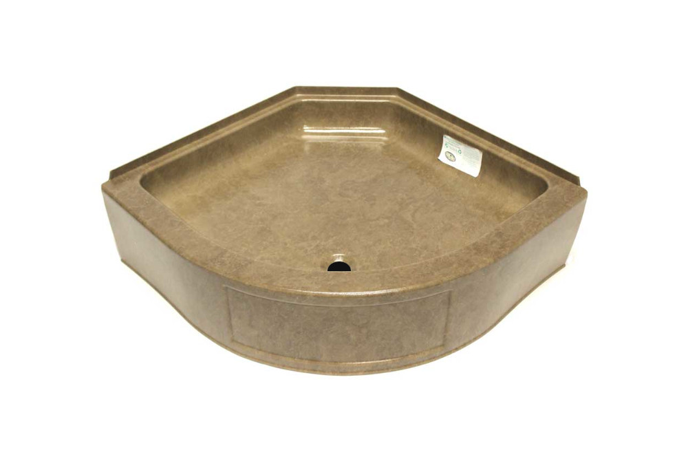 32″ x 32″ Hex Pan – Clay – Round with full skirt. This shower pan is used with any 32″ hex wall surround.