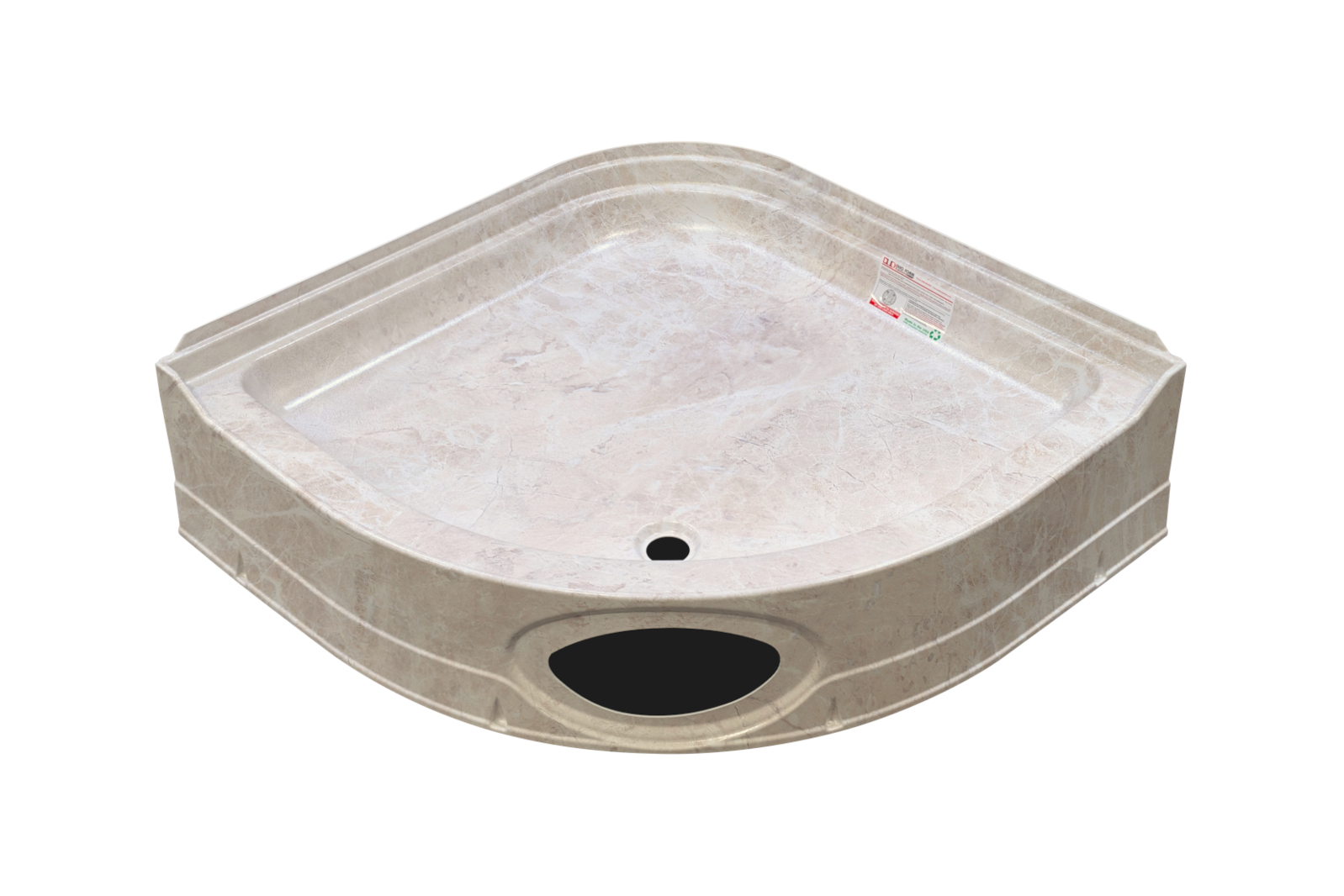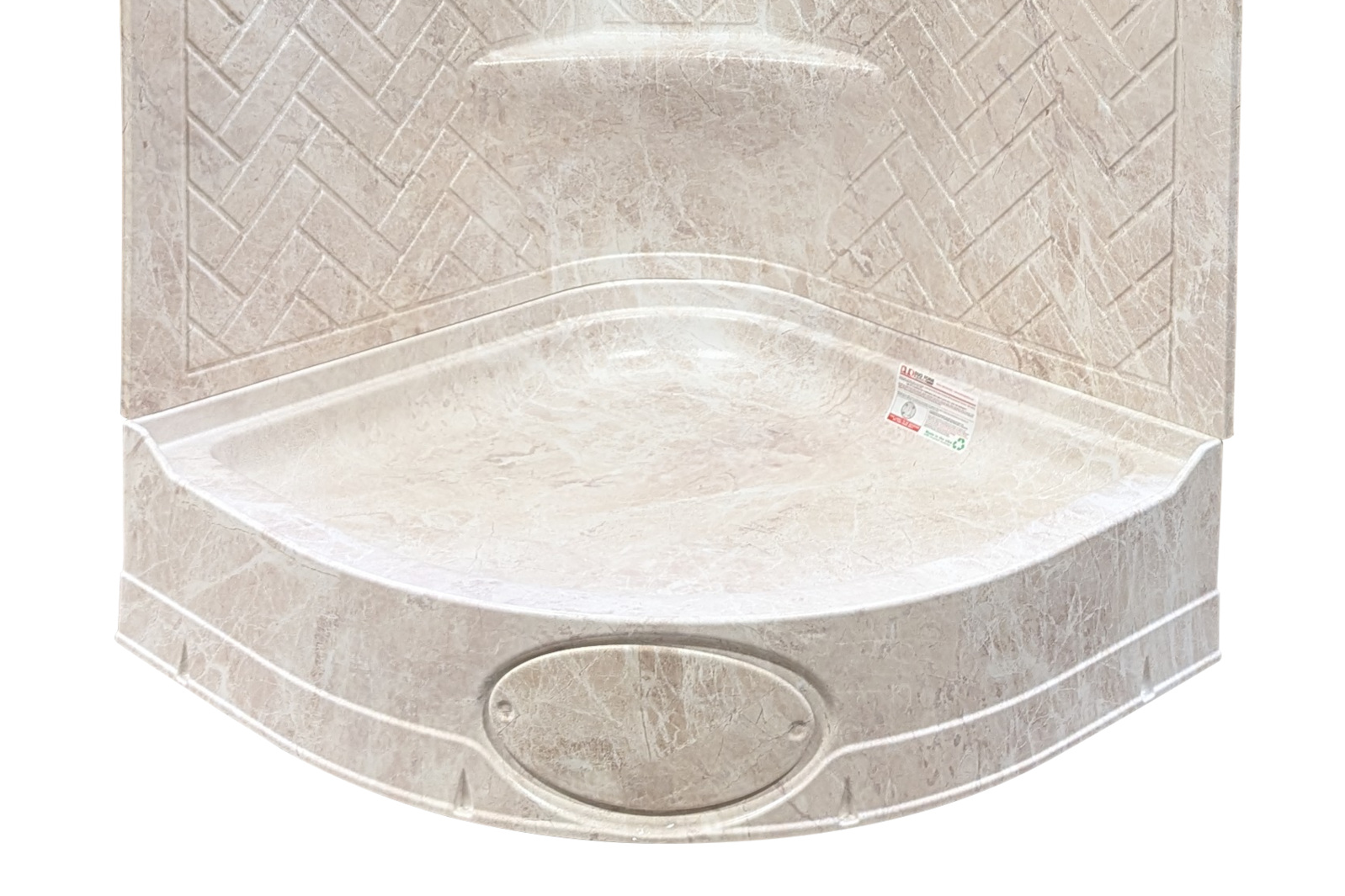 34″ x 34″ Curved Pan – Rocky Mountain – Round with full skirt. This shower pan is used with any 34″ curved wall surround.