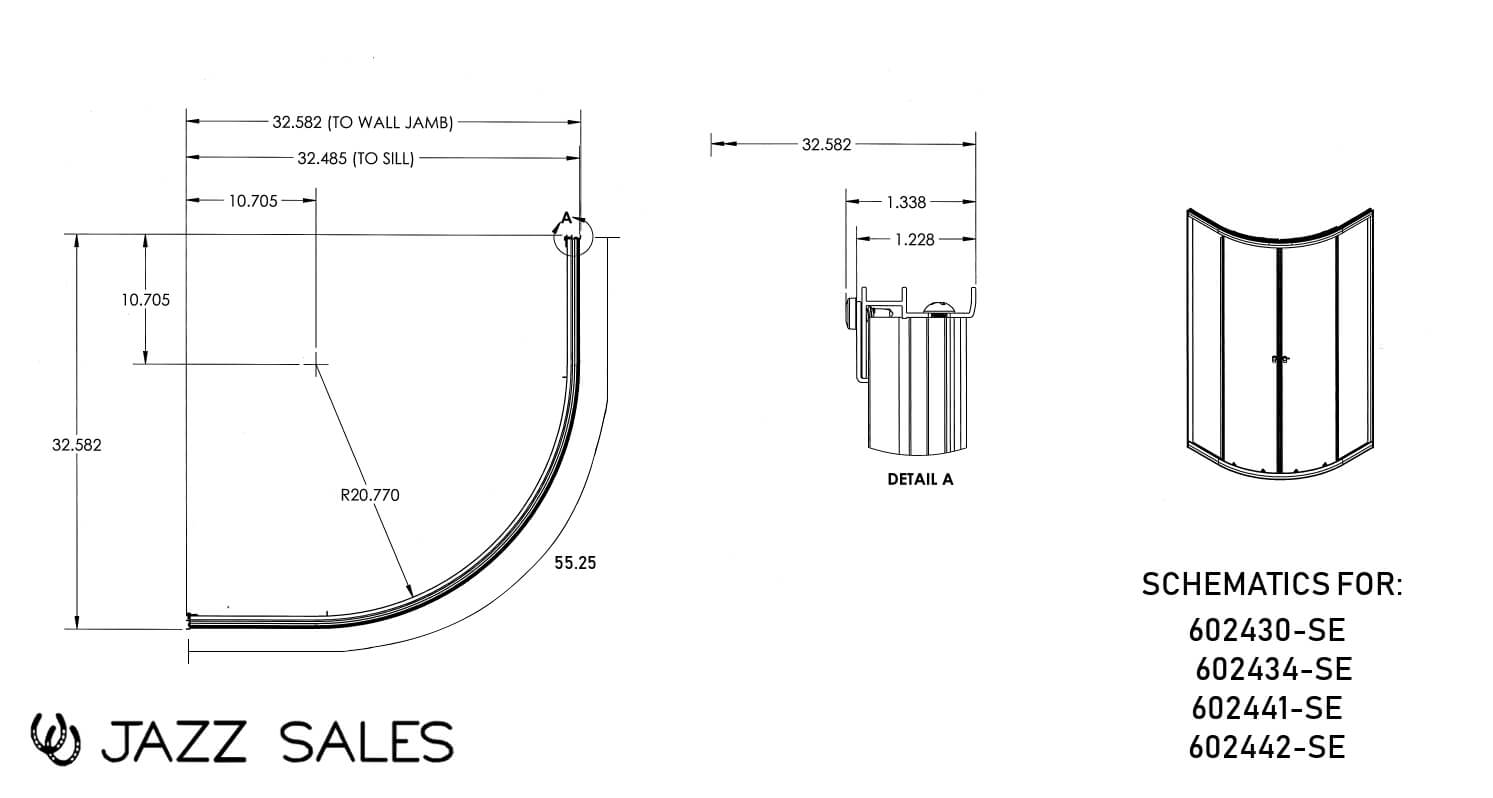 34″ Round Shower Door with Clear Glass and Nickel Finish – 67-1/2″ Tall