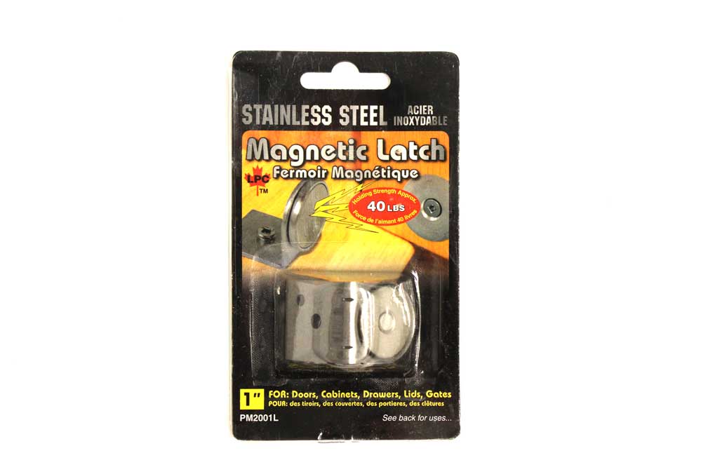 40-lb magnetic latch with L Bracket. Brackets and housing made of 204 stainless steel to resist corrosion. Nickel plated rare earth magnets don’t wear out.