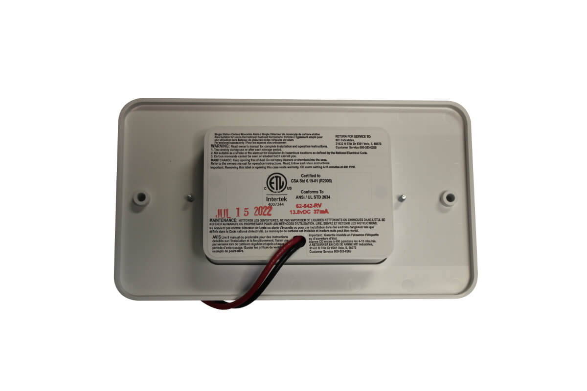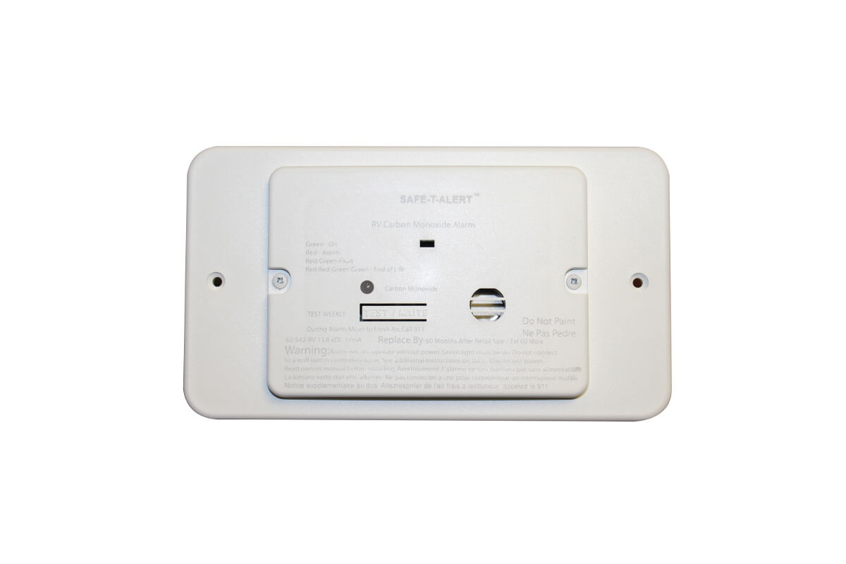 Safe-T-Alert flush mount carbon monoxide alarm for RV’s, campers, etc. This 12V detector hardwires to your 12-volt system and mounts flush with wall. Made in the USA.