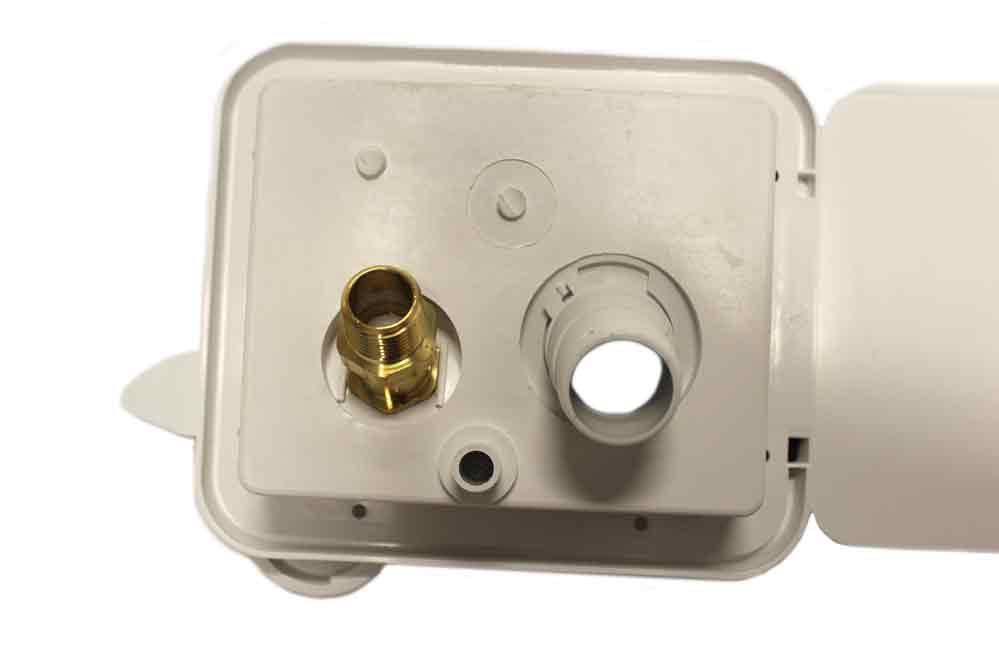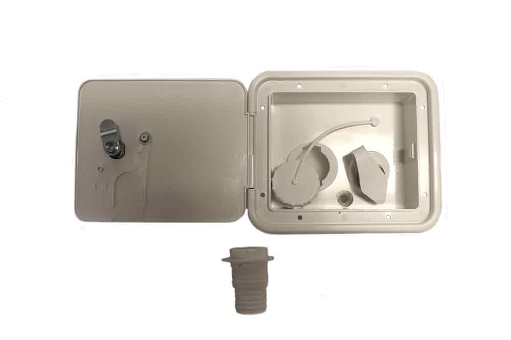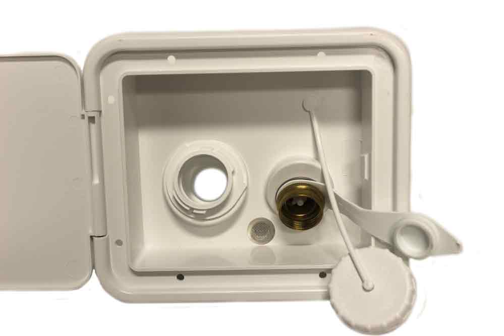 Polar White colored City/Gravity Water Fill w/ Door & Key Lock – Comes with both city and gravity water fills, dust caps and straps. Built of durable plastic for long life that will not fade or discolor. Can paint to match any exterior with no preparation needed. Comes with a brass check valve.
