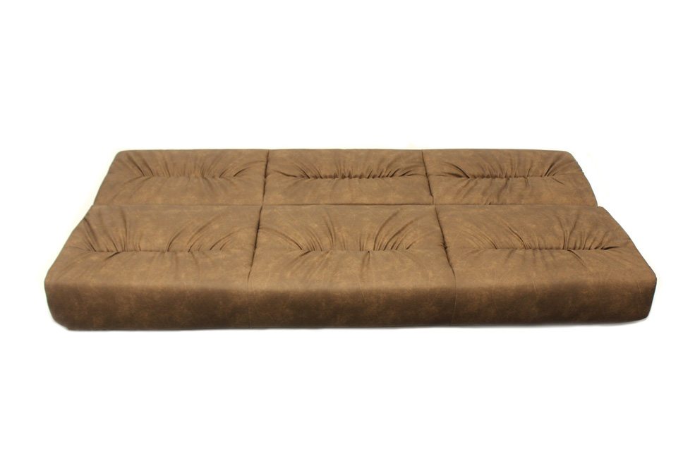 Jackknife sofa in 68″ length (42″ wide when folded out flat). The sofa style is a three panel tuck. Each sofa comes with 2 bolsters and 1 kick board.