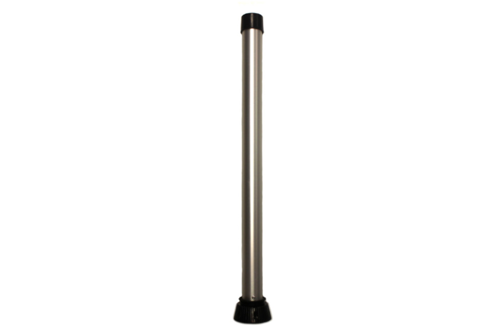 29″ locking table legs are 2″ in diameter, made with anodized aluminum for an entirely corrosion-free leg. The legs lock into base with 3 attached stainless steel blades that twist into the patterned base. The leg is then secured tightly with a screw down collar. Each leg features a stainless steel spring clip on the table end to positively snap into a groove in the base.